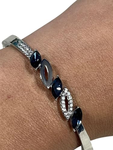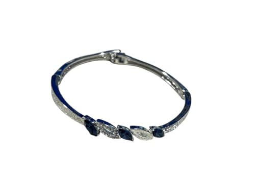 Generic - سوار من الاستالس الاستيل المطلي بالفضه مع بعض الخرز باللون الازرق وبعض الفصوص البيضه كما انه مناسب جميع المقاسات