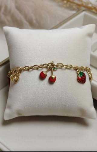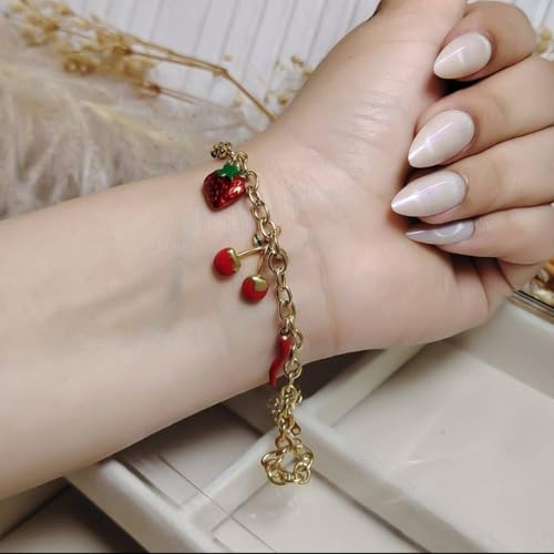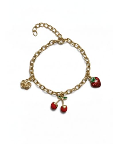 عام - سوار نسائي مزين بفراولة وكرز – اكسسوار ذهبي راقي – تصميم لطيف وأنيق للبنات