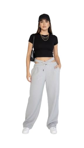 Generic - سويت بانتس رياضي نسائي وسط مزدوج، اسود ورمادي، قطن مريح، فضفاض واسع، بنطلون