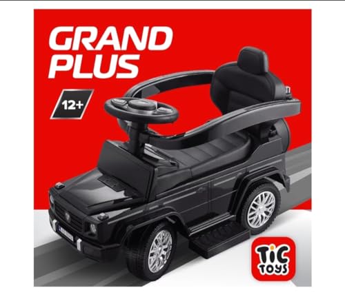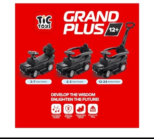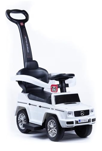 Generic - سيارة ركوب بذراع دفع منزلق للأطفال، سيارة تفاعلية بزمارة وأصوات للموتور (أبيض)