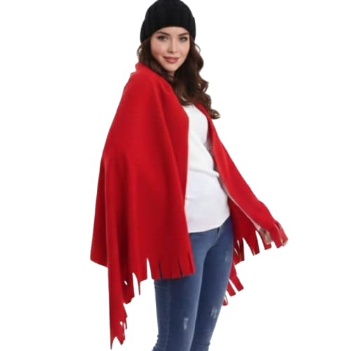Generic - شال انيق حريمي احمر بورجندي قطيفه لشتاء انيق جذاب بالاضافه لايس كاب مبطن