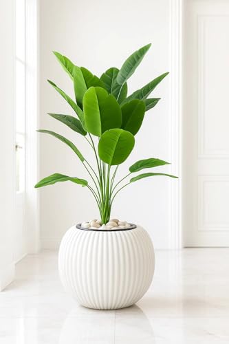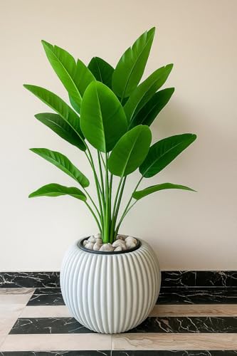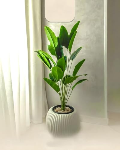 Generic - شجره صناعيه اوراق خضراء كثيفه فى بوت ابيض انيق للديكور المنزلى (شجره البنانا اوراق خضراء فى بوت ابيض)