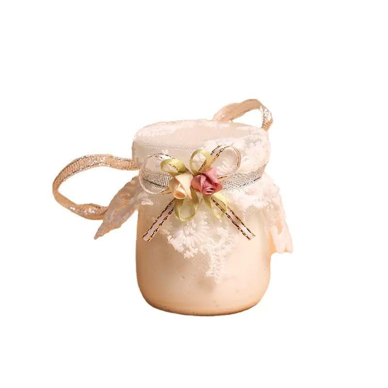 Generic - شمعه معطره في برطمان زجاجي مع غطاء من الدانتيل ,شمعه معطره بدون دخان لديكور المنزل - قطعه واحده