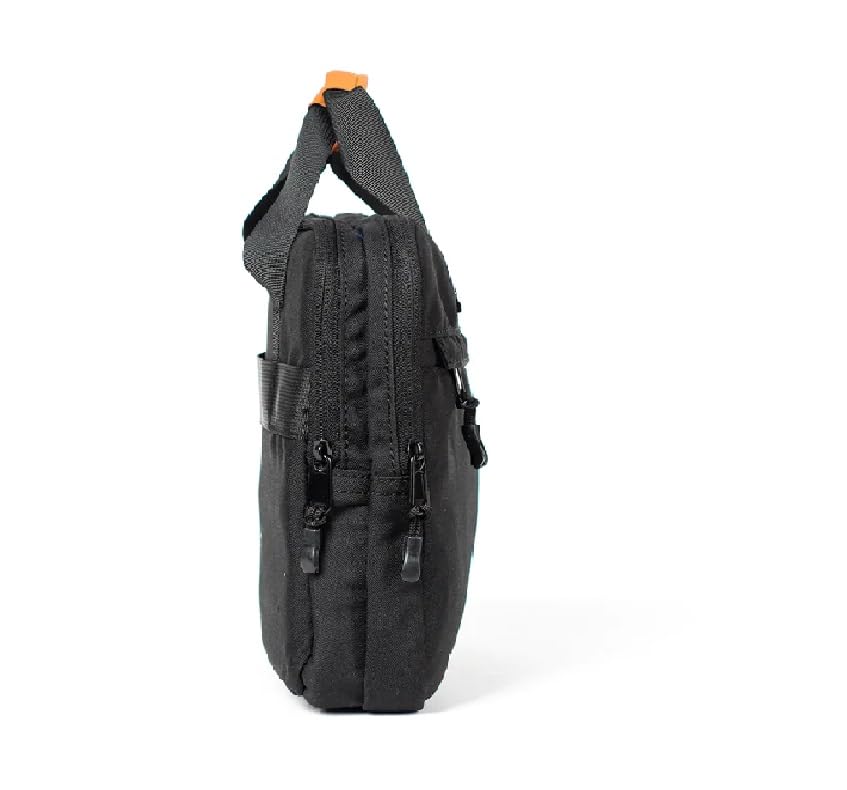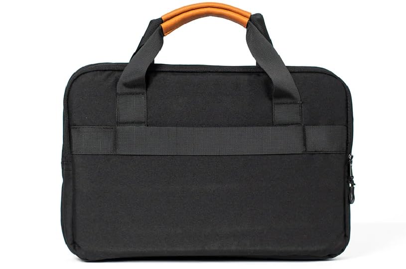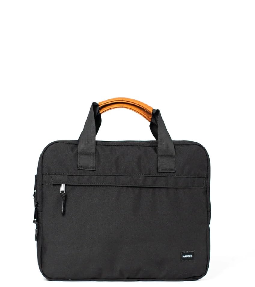 - 5- فقاعات من الفوم - رغوة فقاعية على الحواف الداخلية لجيب حفظ اللابتوب للحماية من الصدمات الخارجية. 6- شريط خلفي لوضع الشنطة بشكل رأسي فوق شنطة السفر عن طريق تمرير مقبض شنطة السفر بداخل الشريط الخلفي الموجود بشنطة اليد. 7- الخامة الاساسية للشنطة من النايلون البوليستر المصنع خصيصا لنسيج والمكون من طبقة من البوليستر وطبقة من مادة ال بي في سي المانعة لتسرب المياه بداخل الشنطة. 8- منطقة تنظيم بداخل الجيب الأمامي ( لوحة تنظيم)، لوضع المحفظة والجوال والمتعلقات صغيرة الحجم