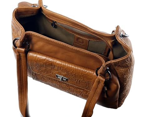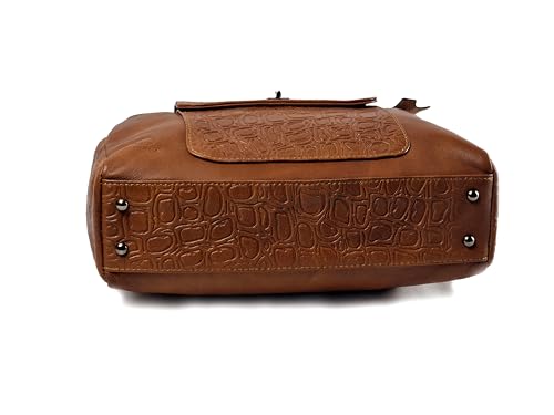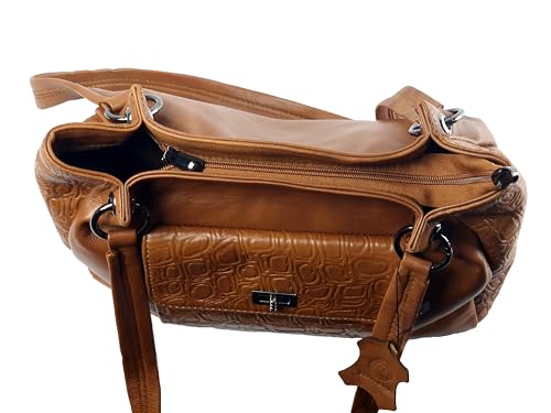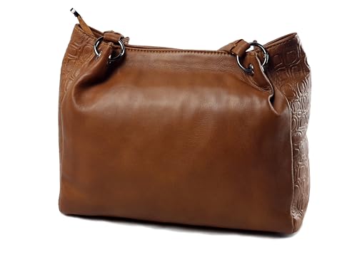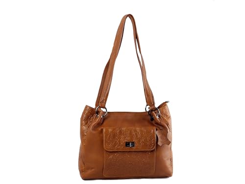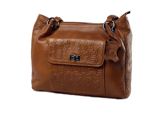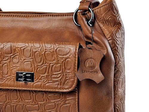 leatheria - شنطة حريمى بتصميم عصري من الجلد الطبيعي المزيّن بالنقوش- متوسطة الحجم