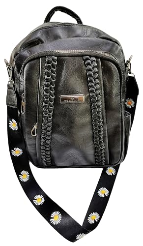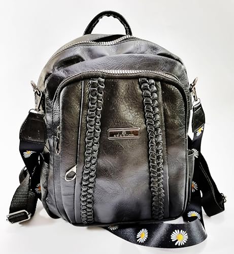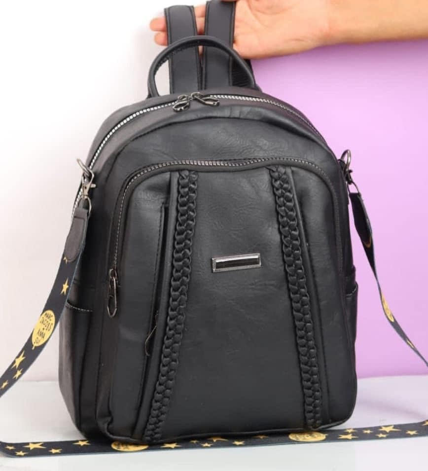 Generic - شنطة ظهر و كروس يد حريمي بناتي لون اسود جلد سميك سوست قوية للنساء