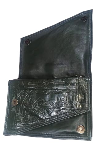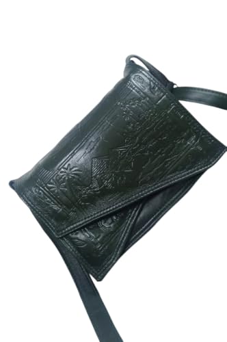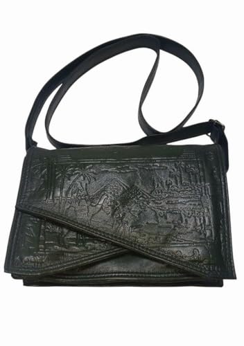 Generic - شنطة كتف وكروس جلد طبيعى للنساء برسم فرعونى بارز