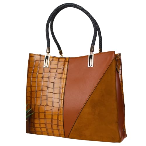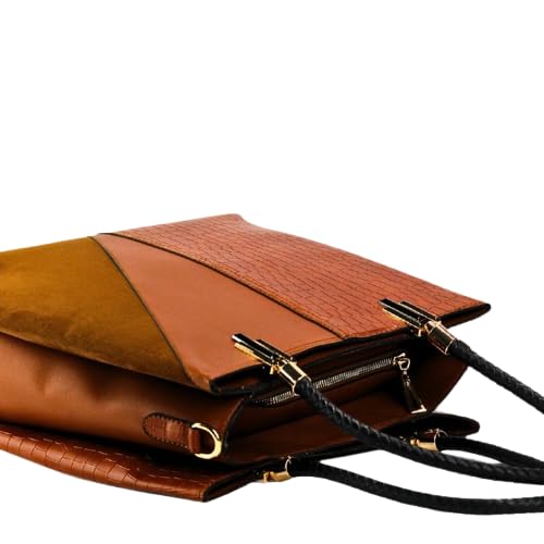 شنطة يد وكتف تطعيم ثلاثى جلد مغطى PU مضادة للخدش والماء - مقاس كبير 36 × 30 - مقسمة من الداخل 3 جيوب - جيب خلفي منفصل كود 1010 - لون هافان