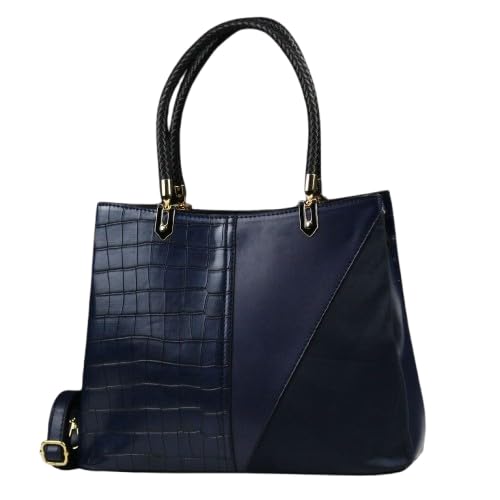 حقيبة يد وكتف حريمى - نتصميم ايطالى - جلد كروكوديل مغطى بطبقة PU ضد الخدش و مقاوم للماء - مع تطعيم شمواه - المقاس 30*30 - اللون ازرق 1010