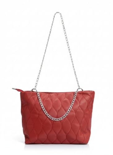 Generic - شنطه حريمى يد كتف من الوتر بروف متطرزه مع يد سلسه فضى حجم وسط