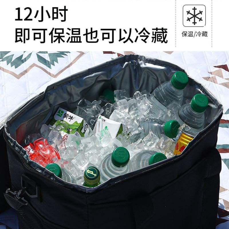 - الشنطه سعه 35لتر تقريبا مقاس 46*26*28 مصنوعه من خامه القماش التقيل ومبطنه من الداخل ببطانه من العازل للحراره للحفاظ علي درجه حراره الماكولات والمشروبات (بارده/ساخنه) كما مزوده جيب اخر لوضع المستلزمات الاخري وبها جيب منظم شبك وكمان منسناش تامين الشنطه من حراره الشمس فذلك تم تامينها ببطانه داخليه قويه وخارجيه من ماده الوتربروف الثقيله المتينه تمنع وصول المياه اشعه الشمس للماكولات وكمان زودنا الشنطه بمقبض قوي ومتين وكمان منسناش الحزام الكورس لسهوله حمل الشنطه