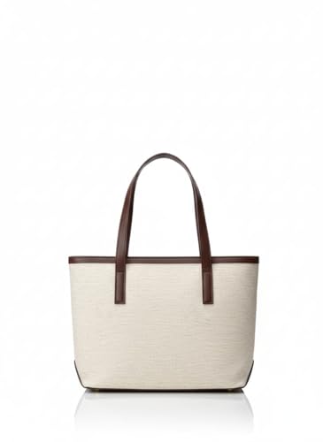 Generic - شنطه يد من القماش مع يد جلد مع تطريز فى الواجها الجسم بيج ثابت مع تغير لون اليد جلد (بنى)