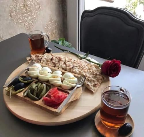 Generic - صينية تقديم دوارة خشبية دائرية، لون طبيعي