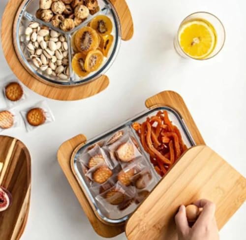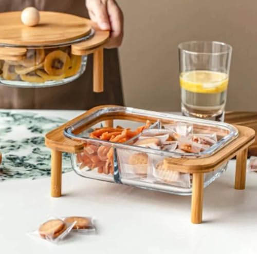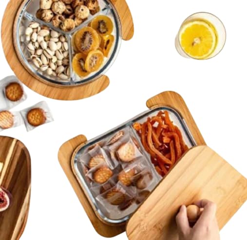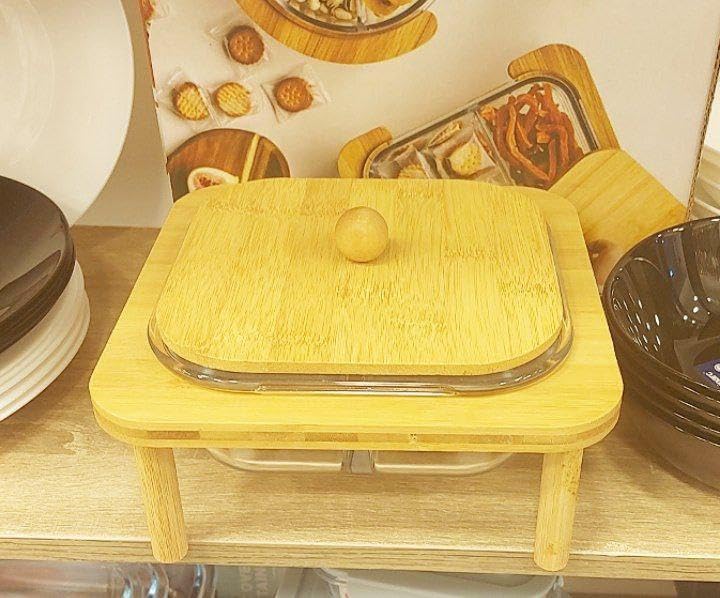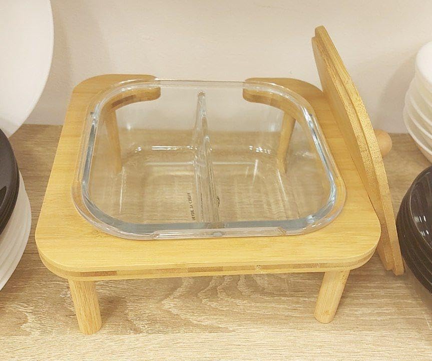 Generic - طاجن تقديم زجاج حرارى بيركس مقسم جزئين بقاعده خشبيه .