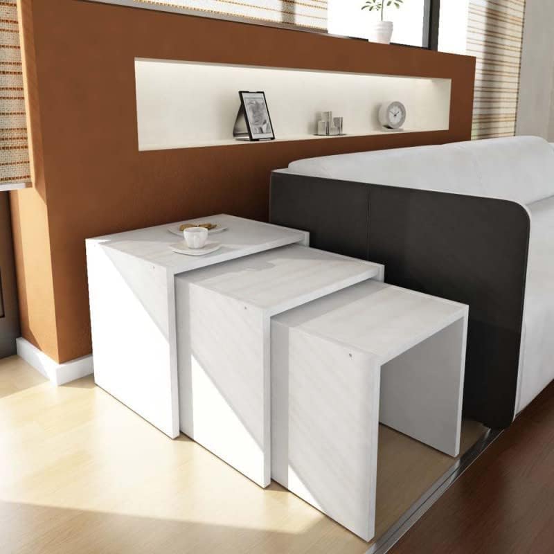 Homz - طاولة قهوة من هومز، مصنوعة من الخشب، بتصميم صواني متداخلة، باللون الأبيض، حجم متوسط