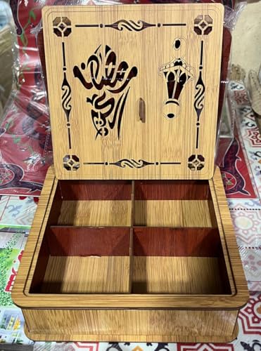 Generic - طبق تسالي متقسم او تمريه خشب متقسمه او علبه باكتات شاي متقسمه مربع الشكل