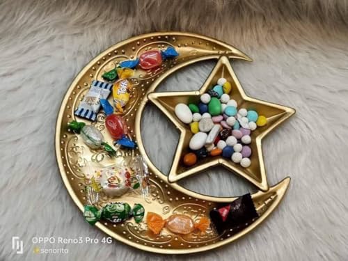 Generic - طبق تسالي هلال ونجمه دهبي بلاستيك بيور وصحي الاستخدامات كتير لب بومبوني وطوفي تحطي فيها التمر مكسرات