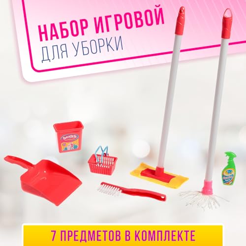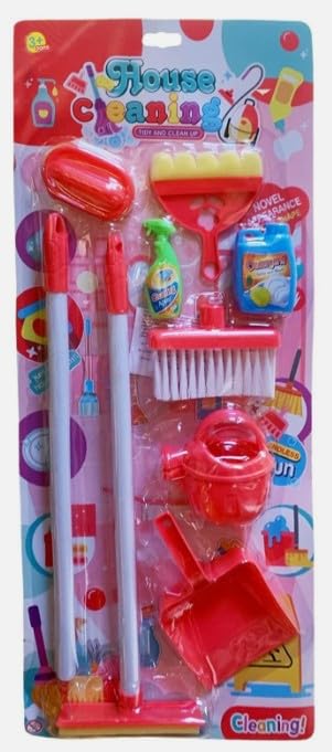 Generic - طقم العاب ادوات تنظيف للاطفال متعددة الالوان – مجموعة تنظيف منزلية تعليمية للاطفال – لعبة تقليد الاعمال المنزلية مع مكنسة وممسحة وادوات تنظيف