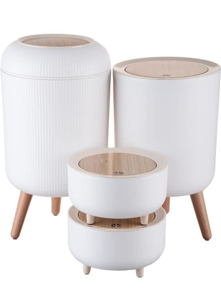 Generic - طقم باسكن قمامه بلاستيك ، حاويات متعددة الأحجام مع أغطية وأرجل خشبية، تصميم أنيق للمنزل والديكور