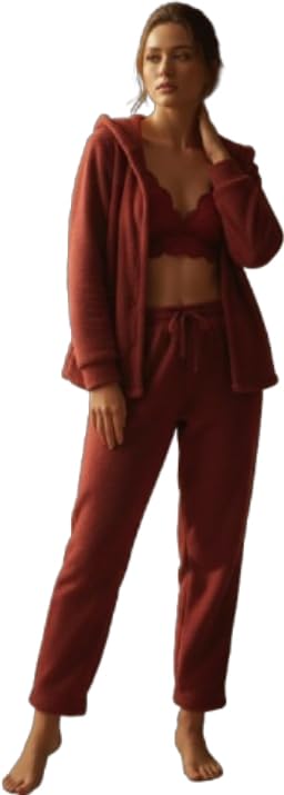 Generic - طقم بجامة كامل فرو عالى الجودة لون نبيتى