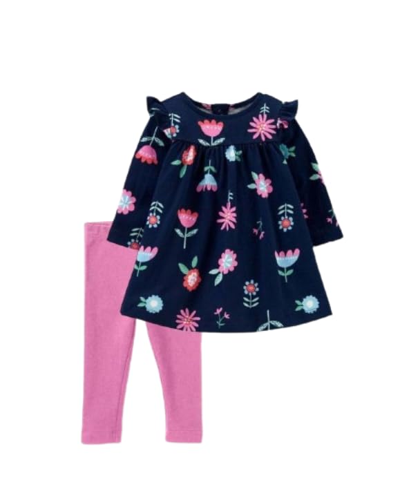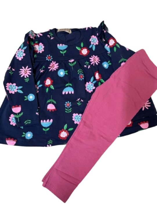 طقم بناتى تيشرت كحلي وبنطلون بينك
