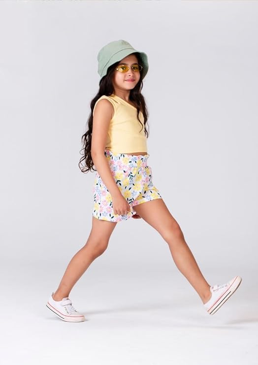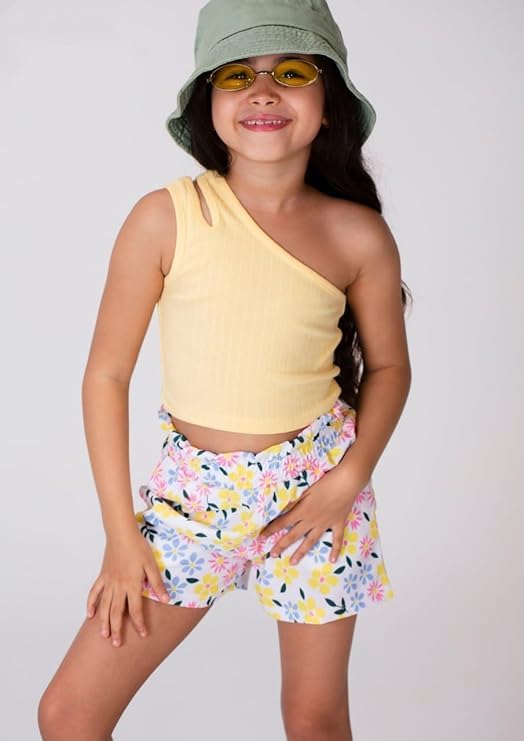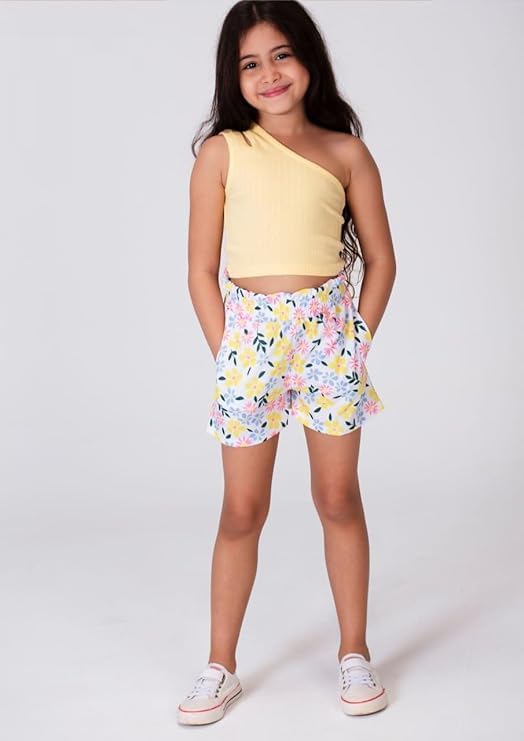 Generic - طقم بناتى توب اوف شولدر مع شورت منقوش