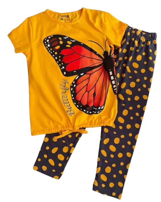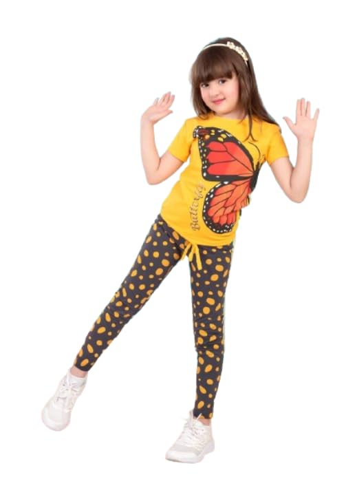 Generic - طقم بناتي تيشرت مسطرده رسمه فراشه وبنطلون رصاصى فى مسطرده