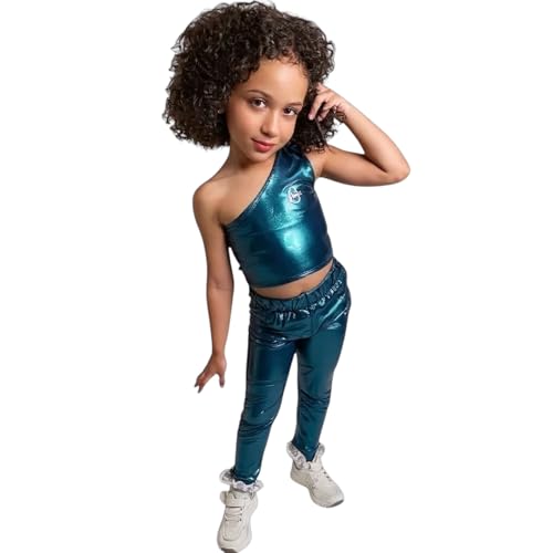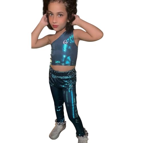 Generic - طقم بناتي جيرسيه للبنات للجمباز والرياضة شولدر كروب توب وبنطلون يصلح للسباحه