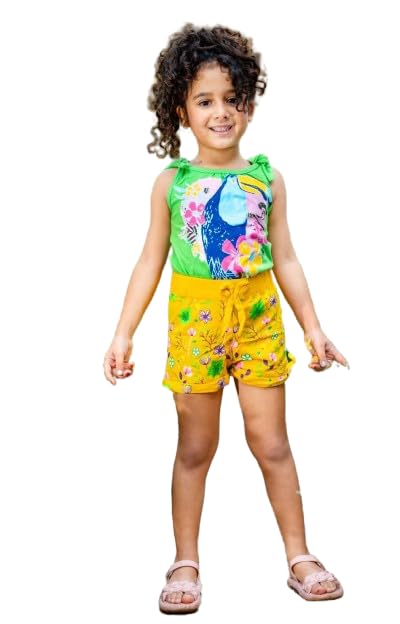 Generic - طقم بناتي خروج قطعتين تيشرت لموني وشورت اصفر