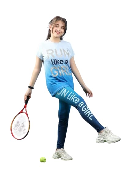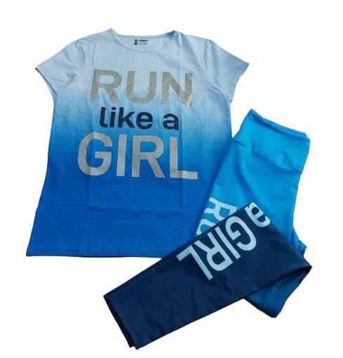 Generic - طقم بناتي رياضي بنطلون بيبي بلو وتيشرت بيبي بلو في رصاصى
