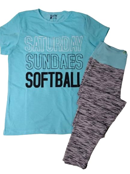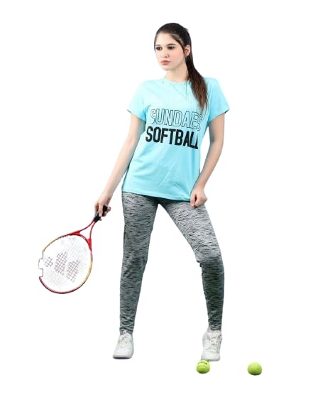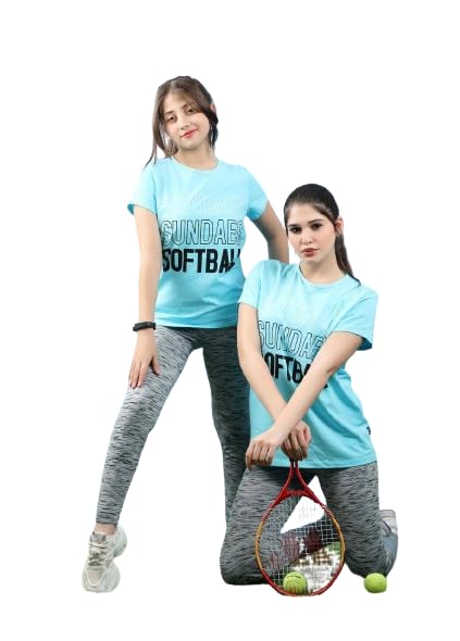 Generic - طقم بناتي رياضي قطعتين تيشرت بيبي بلو وبنطلون رصاصى