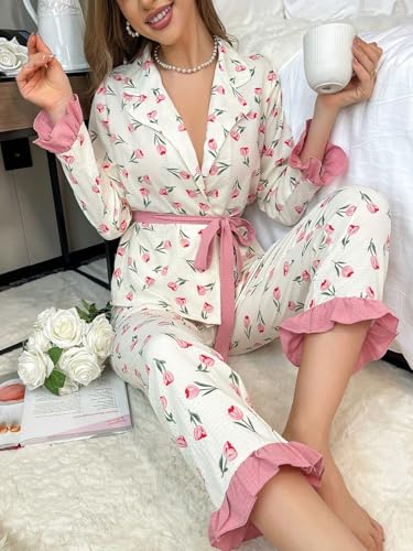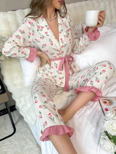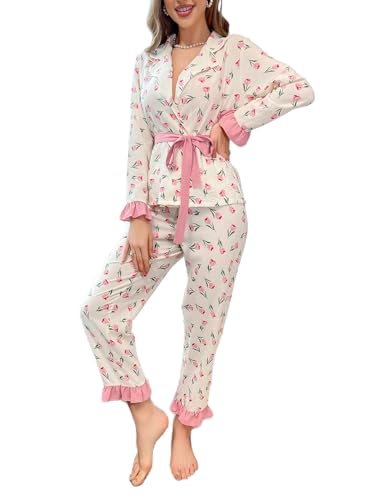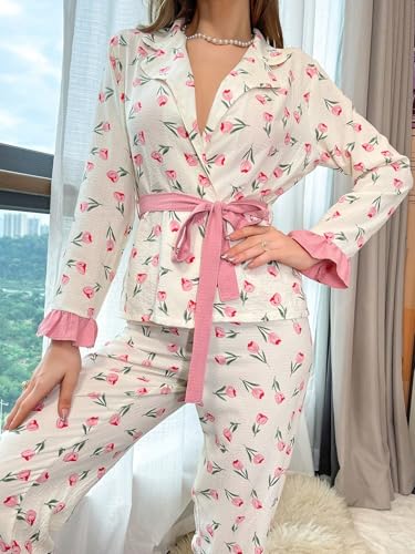 Generic - طقم بيجامة بنطلون صيفى وتوب كارديجان بكم برسومات مطبوعه