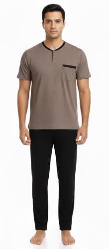 Jet (JET ) - طقم بيجاما صيفي للرجال من جيت - طباعة علوية وبنطلون سادة - بني