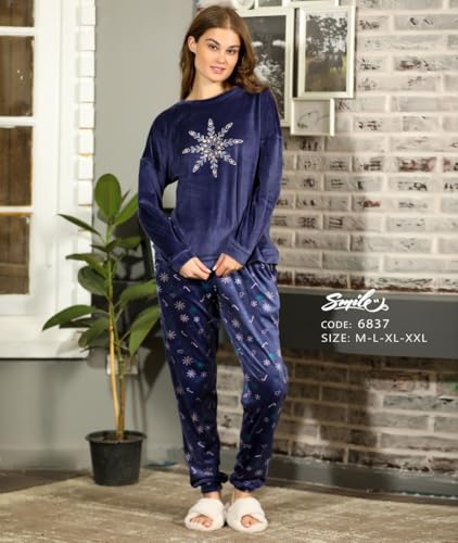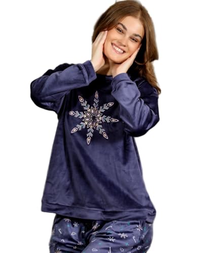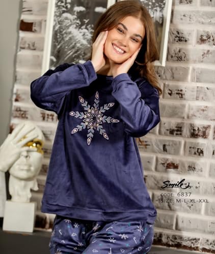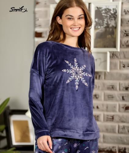 Generic - طقم بيجاما شتوى حريمى قطيفه بنطلون مشجر وتوب بكم مفتوح
