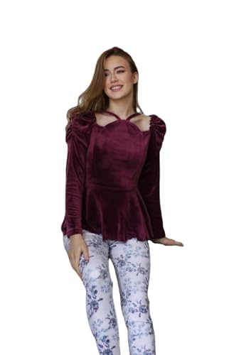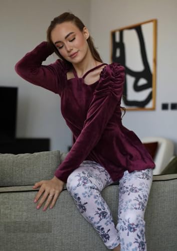 Generic - طقم بيجاما قطيفه حريمى، مقاس موحد، نبيتى، للنساء