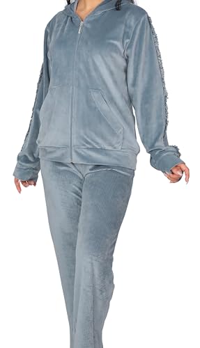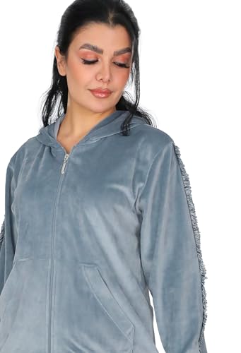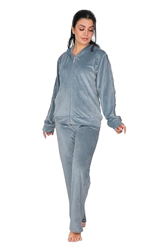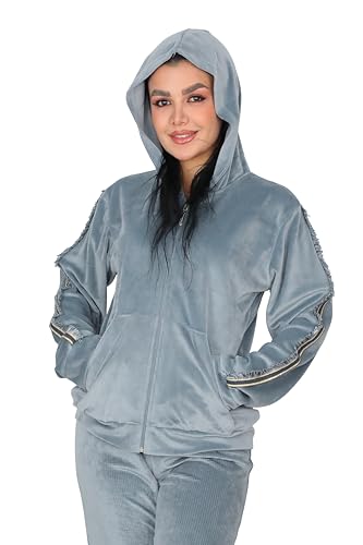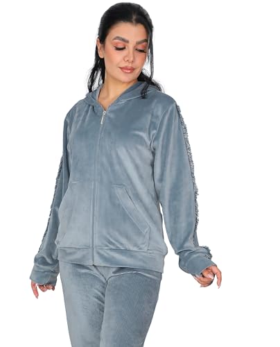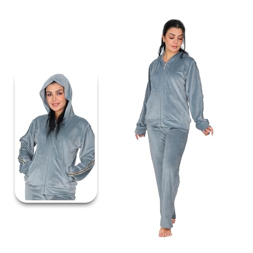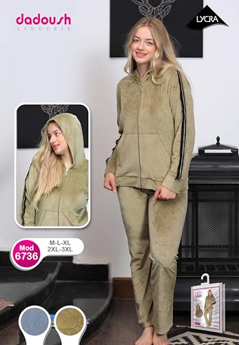 Dadoush - طقم بيجامة نسائي فاخر من المخمل، مكون من قطعتين، مع غطاء رأس وسحاب كامل - ترنج شتوي للنساء كاجوال قطعتين مقاسات متعددة - بيجامه حريمى شتوى قطيفة