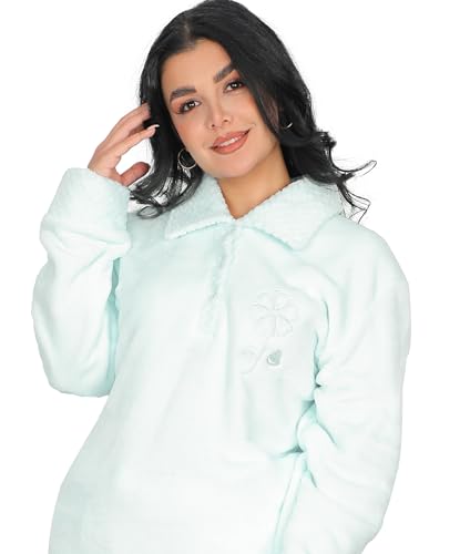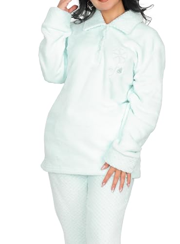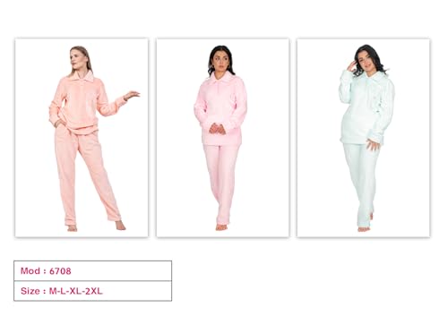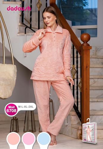 Dadoush - طقم بيجاما نسائي فرو ناعم، قطعتين بلوزة وبنطلون - بيجامه شتوي للنساء مبطنه مكونه من(...(..قطعتين.)..) بيجامه شتويه للنساء