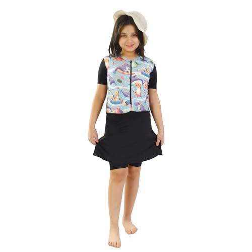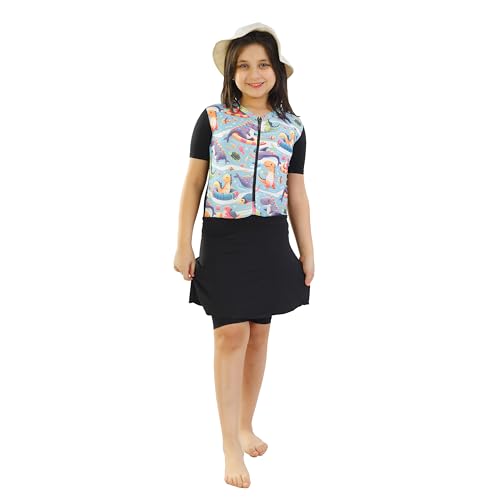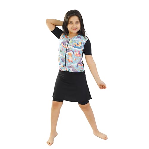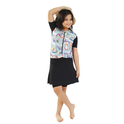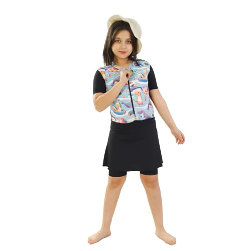 Generic - طقم سباحة أطفالي قطعة واحدة مايوه بناتي و تنوره متصله