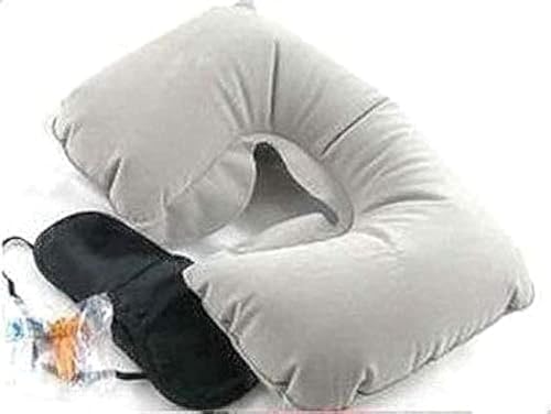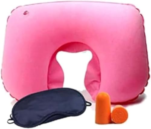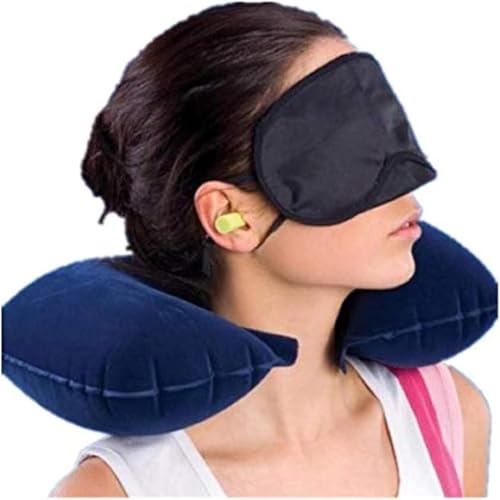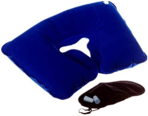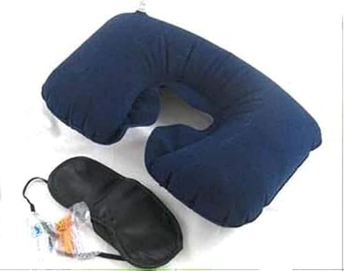 Generic - طقم سفر على شكل وسادة رقبة قابلة للنفخ مع قناع للنوم وسدادات اذن، متعدد الالوان