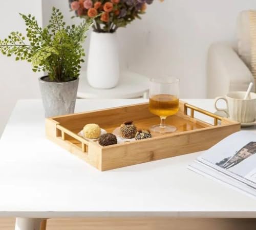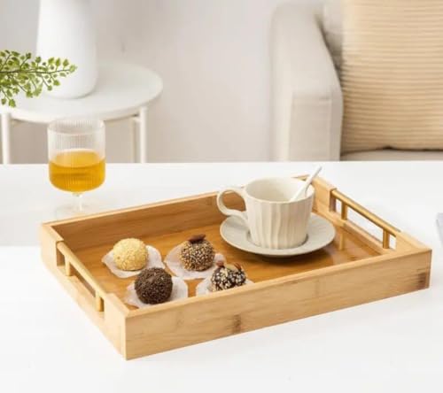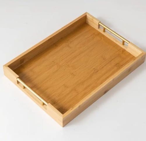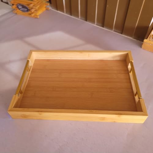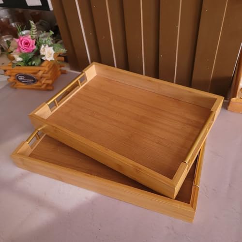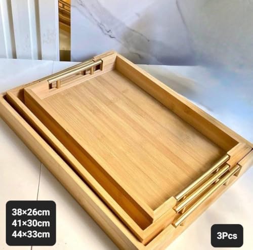Generic - طقم صواني خشب بامبو يد معدن تلت قطع مقاسات مختلفه صغير وكبير ووسط