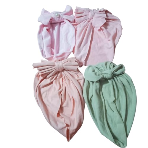 Generic - طقم قبعه تربون يتكون من اربعة قطع باشكال والوان مختلفه قطن ممزوج بليكرا مناسب من ثلاثه شهور حتى سنه ونصف