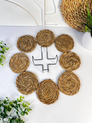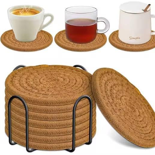 - مصنوع من مواد طبيعية 100% ومضفورة بكثافة عالية لثبات الأكواب: يتميز الطقم بتركيبة طبيعية صديقة للبيئة. النسيج الكثيف والسطح المستوي يضمنان أن تكون الأكواب والأواني الزجاجية ثابتة وآمنة تماماً، مما يمنع انزلاقها ويقلل من خطر الانسكابات.