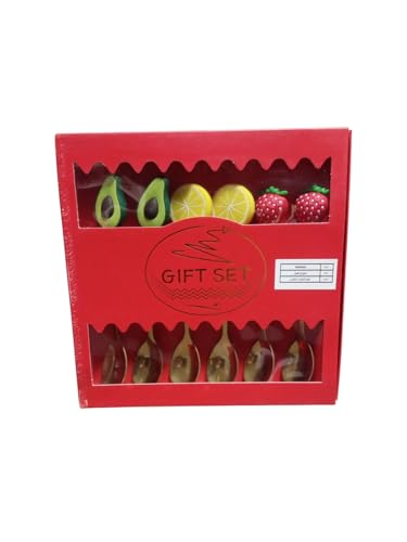 - تصميم لطيف: مجموعة من 6 معالق حلوى مطلية بالذهب تتميز بزينة فاكهة رائعة بما في ذلك الفراولة والبطيخ والأفوكادو والخوخ والبرتقال والدوريان.