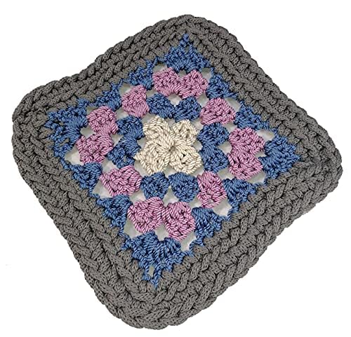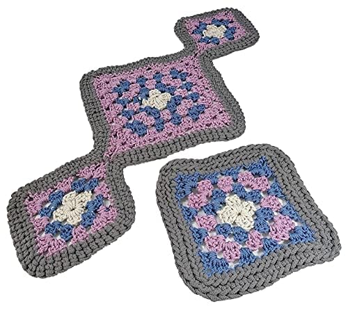 Generic - مفرش كورشية صناعة يدوي مكون من قطعتين شكل ديكوري انيق لون رصاصي وازرق وبنكي