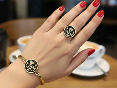Generic - طقم نحاس اسود وخاتم فري سايز وكتابه (امي)
