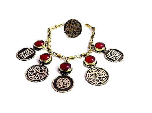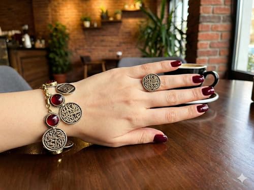 Generic - طقم نحاس (اغاني ام كلثوم) اسود وخاتم ومزين باحجار عقيق بورجندي