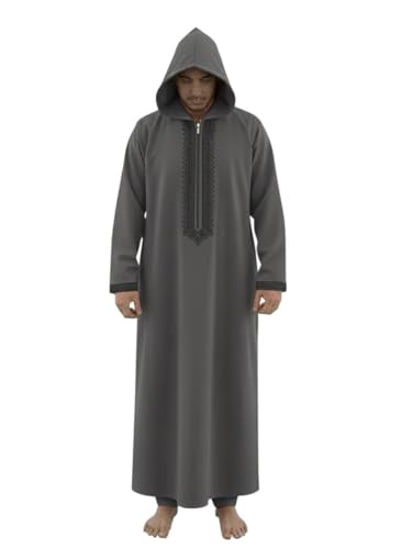 Generic - عبايه بزونط شتوي رجالي, جلابيه كوخ ,ثوب رجالي بقبعة، تطريز تقليدي جلباب عربي إسلامي، متوفر بألوان متعددة