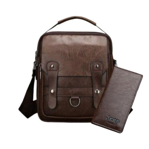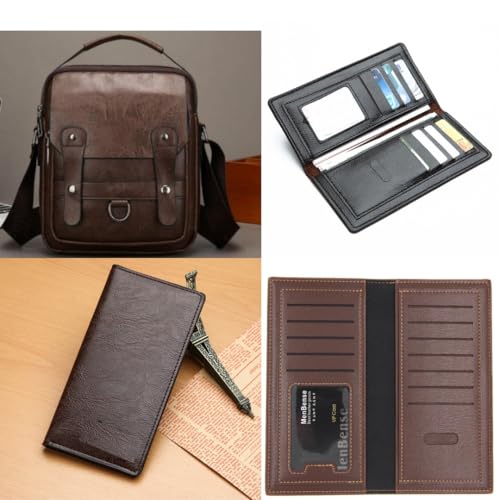 generic - عرض مميز شنطة جلد كروس انيقة + محفظة ثنائية الطي للبطاقات من الجلد – باللون البني