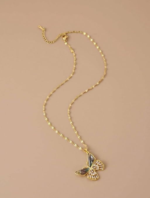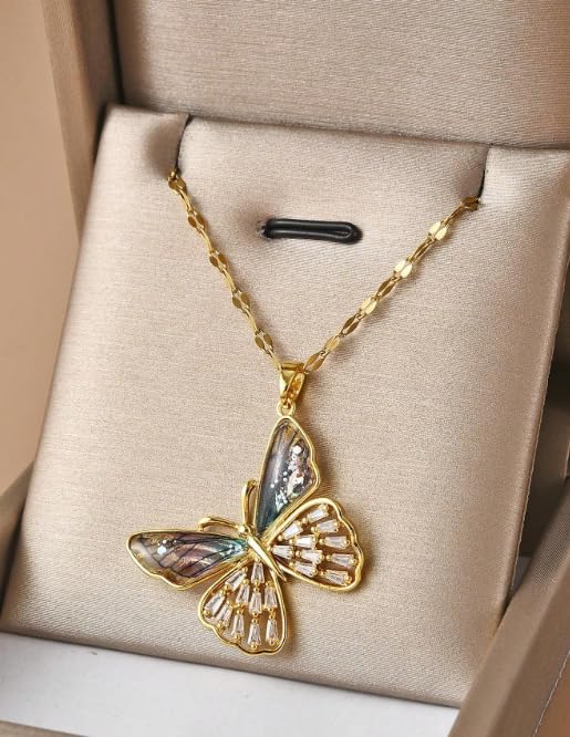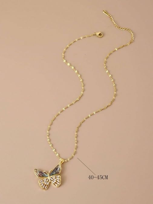 Generic - عقدمي حريمي انيق – تصميم فراشة ملونة مرصعة بالكريستال – اكسسوار ناعم وعصري للبنات
