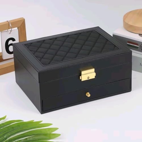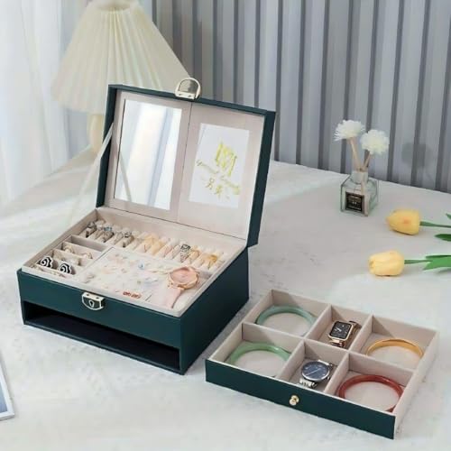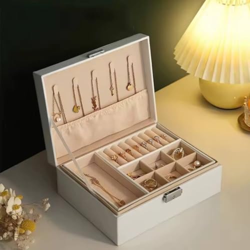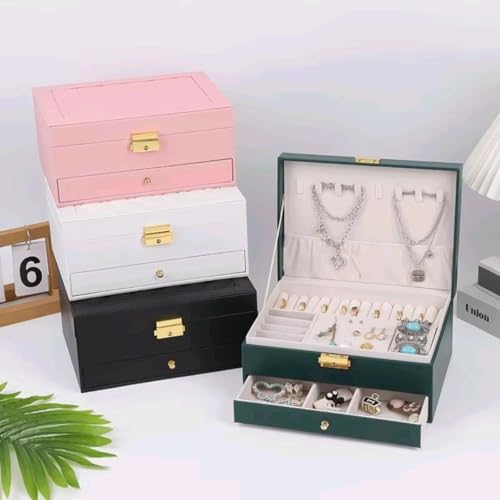 Generic - علبة تخزين اكسسوارات جلد – منظم للمجوهرات والسلاسل والخواتم والأساور – تصميم أنيق لطاولة الزينة